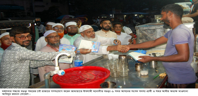 বগুড়ায় বৌ বাজারে জামায়াত প্রার্থী সোহেলের নির্বাচনী গণসংযোগ