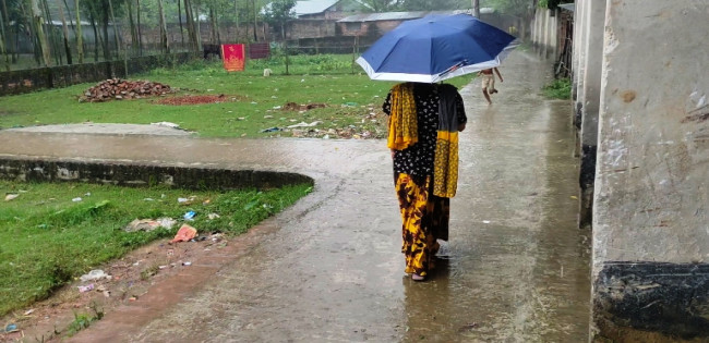 হিলিতে মুষলধারে বৃষ্টি,শিশুরা বৃষ্টির আনন্দে মেতে উঠেছে