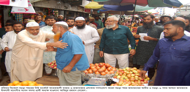 বগুড়া নিউ মার্কেটে গণ সংযোগকালে আবিদুর রহমান সোহেল