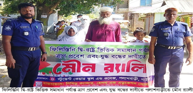 পর্যাপ্ত ত্রাণ প্রবেশ এবং যুদ্ধ বন্ধের দাবীতে পলাশবাড়ীতে মৌন র্যালী