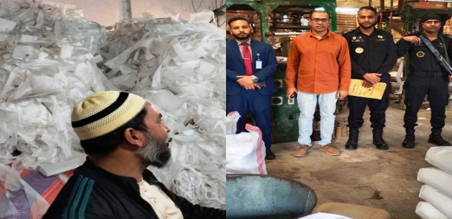 দিনাজপুরে নিষিদ্ধ পলিথিন কারখানায় র্যাবের অভিযান,জরিমানা ও সিলগালা