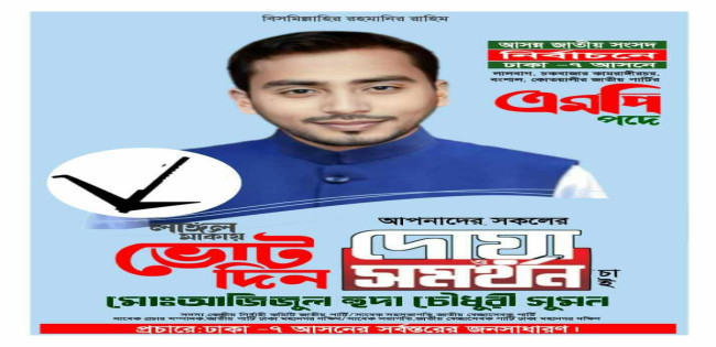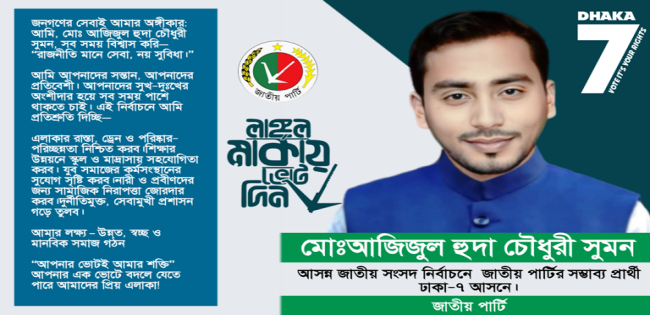 ঢাকা-৭ আসনে পরিবর্তনের অঙ্গীকার নিয়ে এগিয়ে আসছেন মোঃ আজিজুল হুদা চৌধুরী সুমন