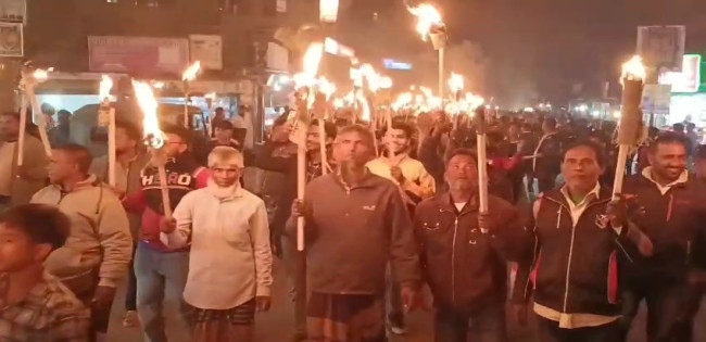 দিনাজপুর-২ আসনে বিএনপি'র প্রার্থী পরিবর্তনের দাবিতে মশাল মিছিল