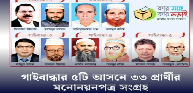 গাইবান্ধার ৫টি সংসদীয় আসনে ৩৩ প্রার্থীর মনোনয়নপত্র সংগ্রহ।