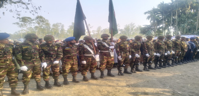 সুদানে শান্তি মিশনে নিহত কুড়িগ্রামের ২ সেনা সদস্যদের মরদেহ সামরিক মর্যাদায় নিজ নিজ গ্রামের বাড়িতে দাফন।