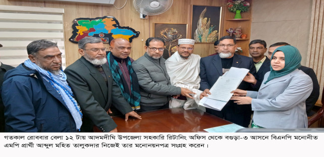 বগুড়া-৩ আসনে বিএনপি প্রার্থীর মনোনয়নপত্র সংগ্রহ