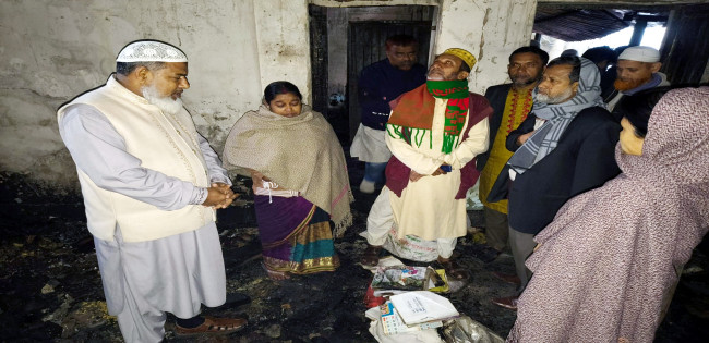 বগুড়ায় ভয়াবহ অগ্নিকান্ডে ক্ষতিগ্রস্থ ৩ হিন্দু পরিবারকে সহায়তা দিলো জামায়াত