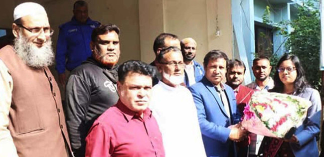 কাহালুর নবাগত ইউএনও কাশপিয়া তাসরিনকে ফুলেল শুভেচ্ছা জানালেন প্রশাসনিক কর্মকর্তা ইকবাল হোসেন