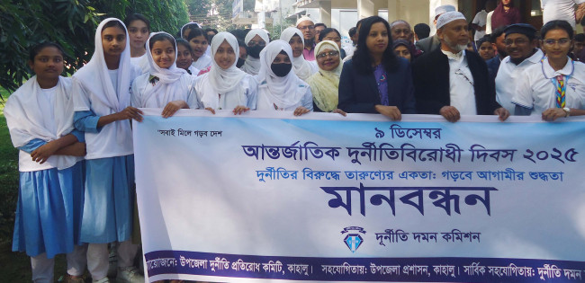 কাহালুতে আন্তর্জাতিক দুনীতি বিরোধী দিবস উপলক্ষে মানববন্ধন কর্মসূচী পালন