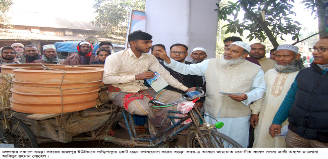 বগুড়ার রাজাপুরে দাড়িপাল্লায় ভোট চেয়ে সোহেলের গণসংযোগ