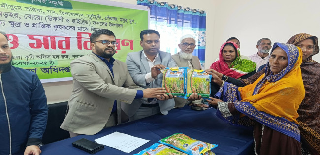 পলাশবাড়ীতে প্রান্তিক কৃষকের মাঝে বিনামূল্যে বীজ–সার বিতরণ