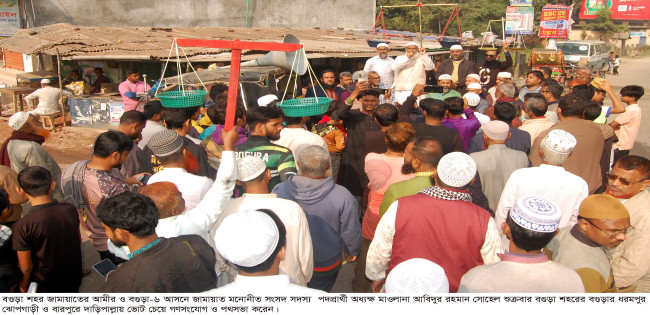 বগুড়ার ঝোপগাড়ী বারপুরে দাড়িপাল্লায় ভোট চাইলেন জামায়াত প্রার্থী সোহেল