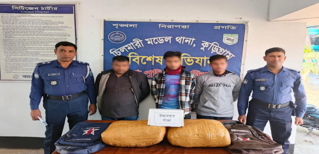 চিলমারীতে ১৪ কেজি গাঁজা সহ ৩ জন মাদক ব্যবসায়ী পুলিশের হাতে গ্রেফতার