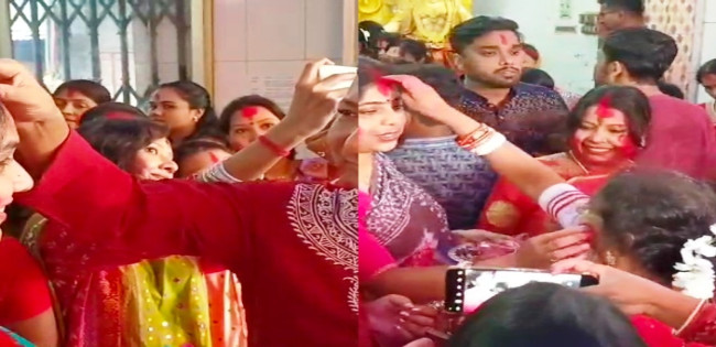 দিনাজপুরে মেতেছে বিজয়া দশমীর সিঁদুর খেলা