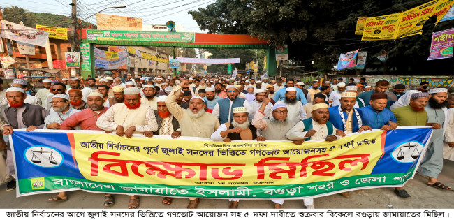 জাতীয় নির্বাচনের আগে গণভোটসহ ৫দফা দাবীতে বগুড়ায় জামায়াতের বিক্ষোভ