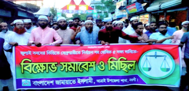আত্রাইয়ে পাঁচ দফা দাবিতে জামাতের বিক্ষোভ মিছিল ও সমাবেশ
