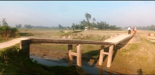 পলাশবাড়ীতে দুমড়ে যাওয়া ব্রিজের উপর দিয়ে ঝুঁকি নিয়ে রাস্তা পারাপার পথচারীরা