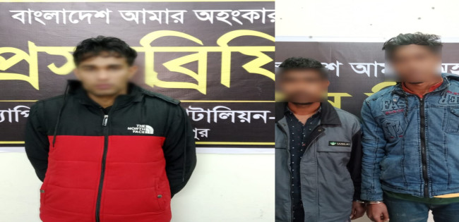 র্যাব-১৩ এর পৃথক অভিযানে ৩৪৪ বোতল এসকাফ ও ৩.৫ কেজি গাঁজা জব্দ,গ্রেফতার ৩