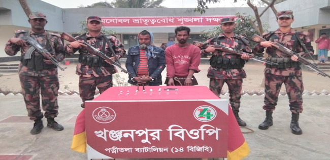 সাপাহার সীমান্তে ১৪ বিজিবি কর্তৃক ২ জন চোরাকারবারীসহ মাদকদ্রব্য আটক