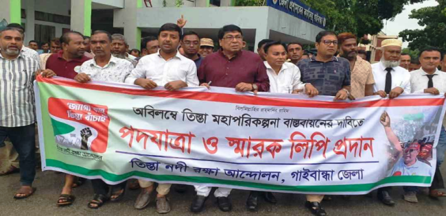 তিস্তা মহাপরিকল্পনা বাস্তবায়ন দাবিতে পদযাত্রা,স্মারকলিপি প্রদান