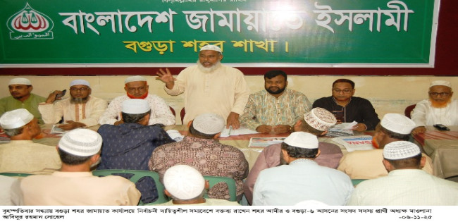 বগুড়া শহর জামায়াতের নির্বাচনী দায়িত্বশীল সমাবেশ দাঁড়িপাল্লা বিজয়ী করতে নির্বাচনী ময়দানে ঝাপিয়ে পড়ুন--সোহেল