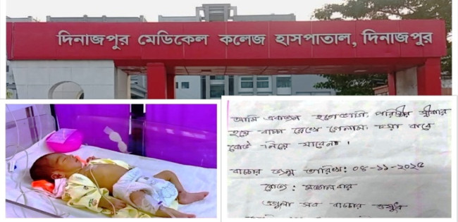 দিনাজপুর মেডিকেল কলেজ হাসপাতালে নবজাতক রেখে মা উধাও,পাশে মিলল চিরকুট