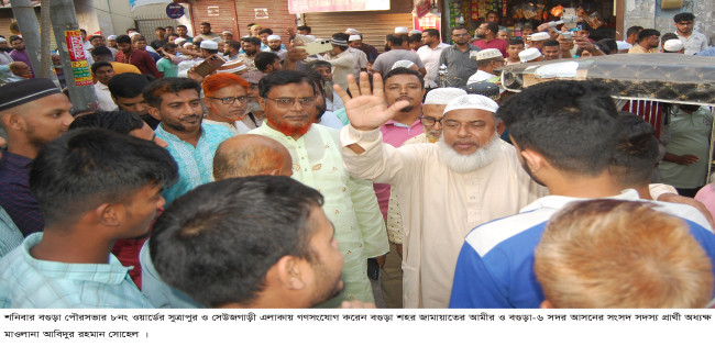 বগুড়ার ৮নং য়ার্ডে দাঁড়িপাল্লায় ভোট চেয়ে সোহেলের গণসংযোগ