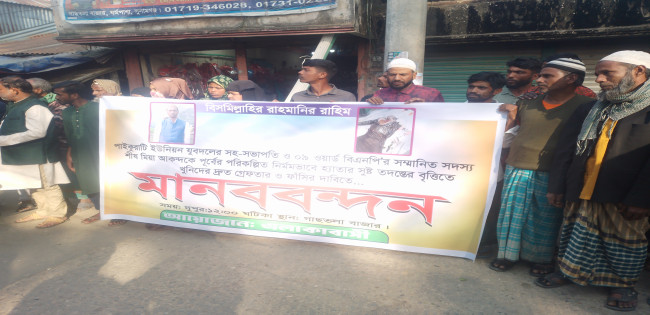 সুনামগঞ্জের ধর্মপাশায় শীষ মিয়ার হত্যার দোষীদের গ্রেফতারের দাবীতে মানববন্ধন