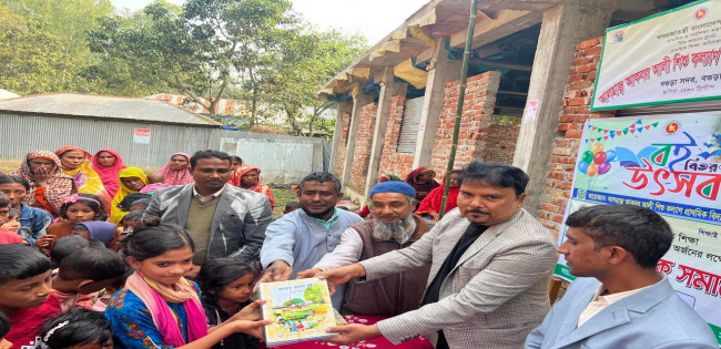 উৎসব ছারাই রাষ্ট্রীয় শোকের মধ্যেদিয়ে শিক্ষার্থীদের মাঝে বই বিতরণ