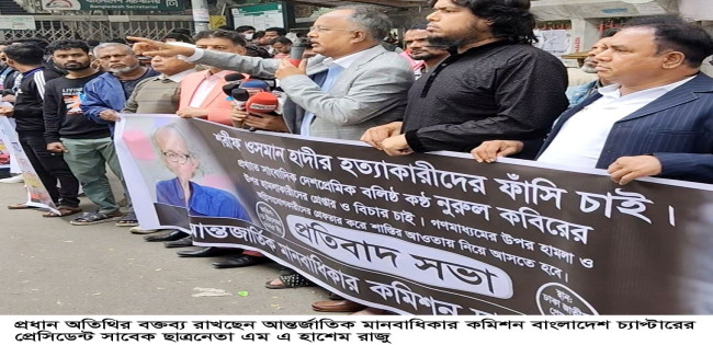 ওসমান হাদীর খুনিদের ফাঁসির দাবিতে আইএইচআরসি’র প্রতিবাদী সমাবেশ