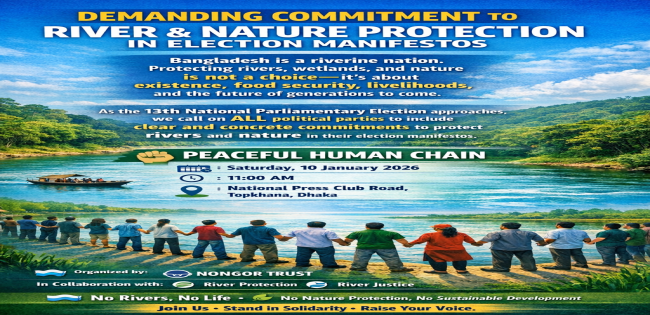 নোঙর ট্রাস্ট আয়োজিত ‘নদ-নদী, খাল-বিল, পরিবেশ ও প্রাণ প্রকৃতি সুরক্ষায় সকল রাজনৈতিক দলের অঙ্গীকার চাই’