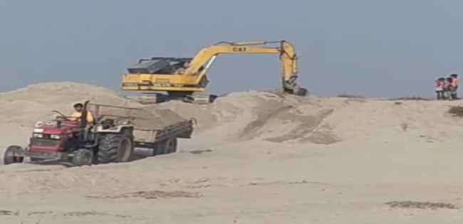নাগেশ্বরীতে দুধকুমর নদের বাঁধ কেটে বালু বিক্রি করছেন ছাত্রদল নেতা বালু খেকো জাকারিয়া।