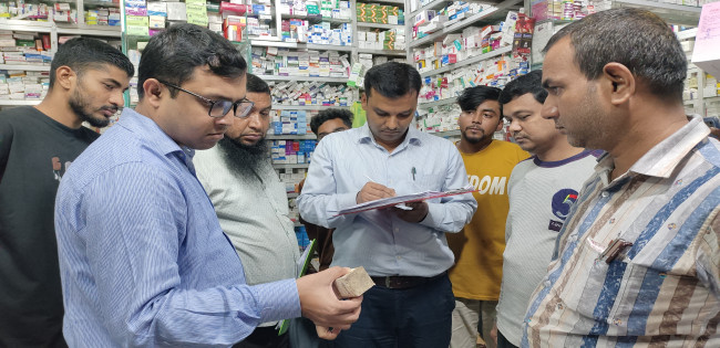হিলিতে ঔষধের ফার্মেসীতে ভ্রাম্যমাণ আদালতের অভিযান,৫ দোকানে জরিমানা