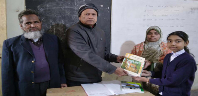 উৎসব ছারাই রাষ্ট্রীয় শোকের মধ্যেদিয়ে শিক্ষার্থীদের মাঝে বই বিতরণ