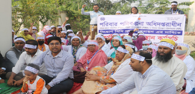 নিয়োগবিধি বাস্তবায়নের দাবিতে নওগাঁয় পরিবারকল্যাণ কর্মীদের কর্মবিরতি