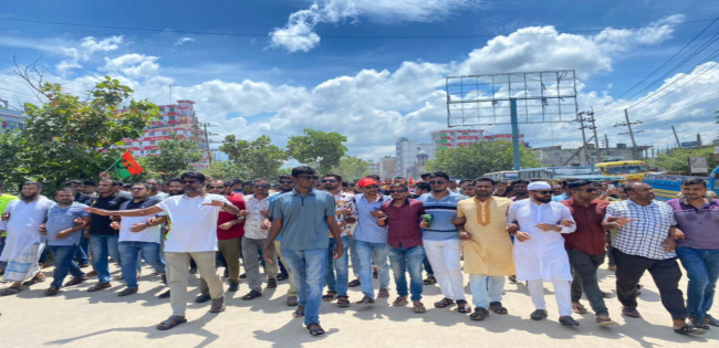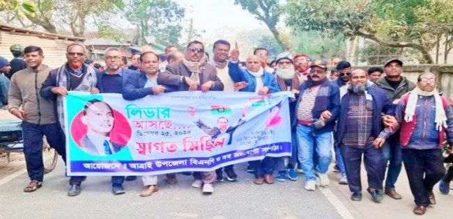 তারেক রহমানের স্বদেশ প্রত্যাবর্তন উপলক্ষে আত্রাইয়ে উপজেলা বিএনপির আনন্দ মিছিল