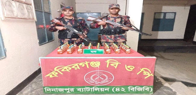 পীরগঞ্জে বিজিবির চোরাচালান বিরোধী অভিযানে বিপুল পরিমাণ ভারতীয় মদ উদ্ধার
