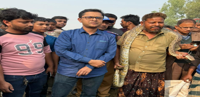 ভূরুঙ্গামারীতে ৯ ফুট লম্বা অজগর সাপ উদ্ধার
